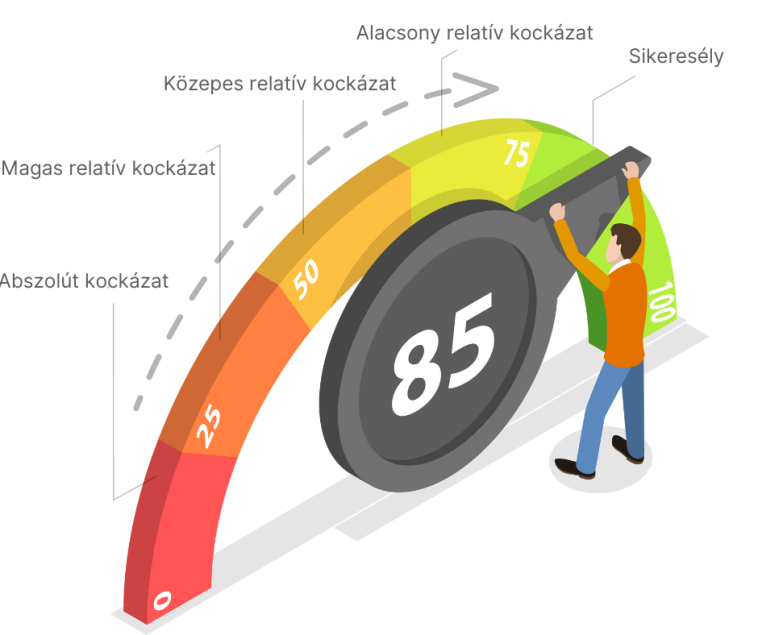 A Sikerpotenciál a vállalkozásod cél-elérési képessége, aminek szintjét a tesztek eredményéből kiindulva mérni tudod.
